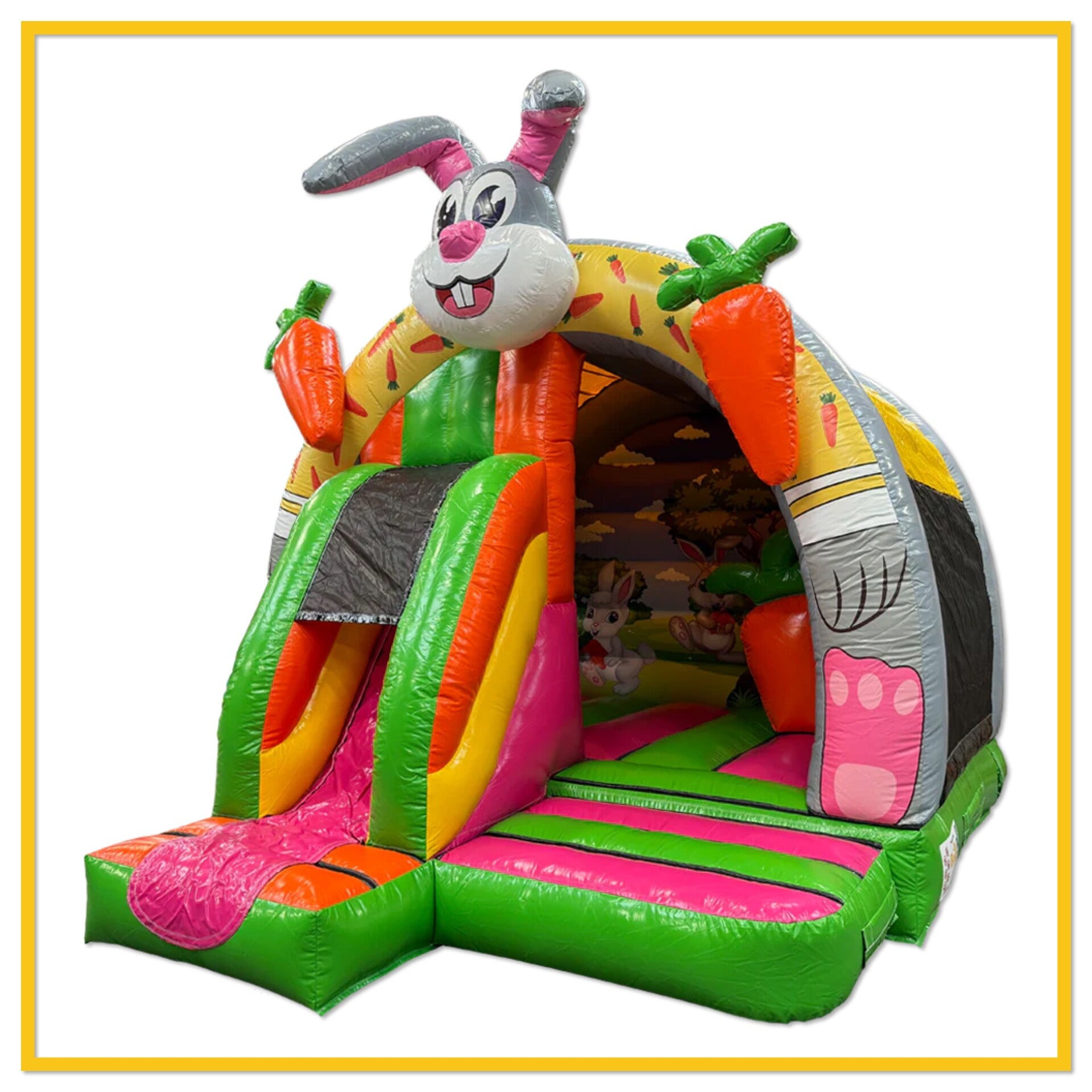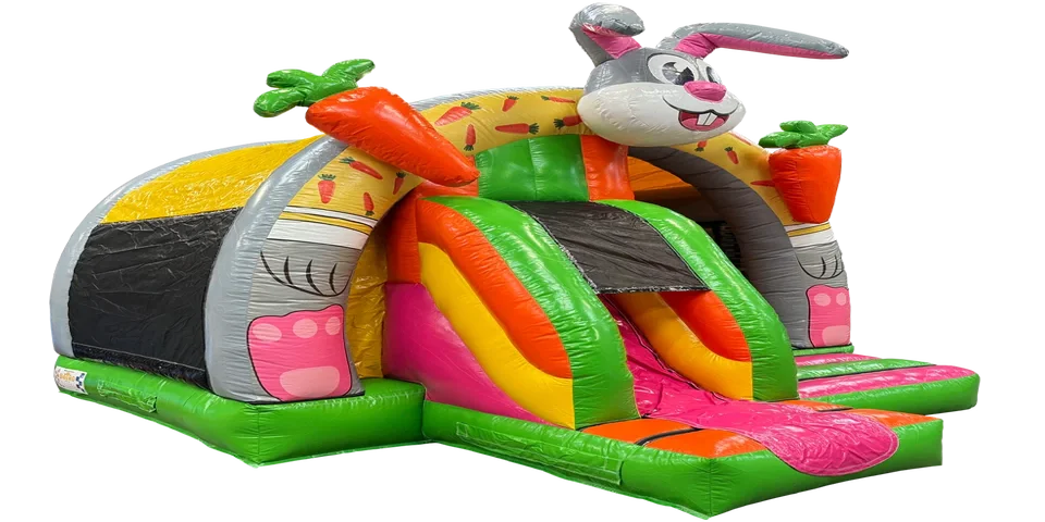 Het 3D Konijn springkussen is een uniek en speels springkasteel dat direct de aandacht trekt door zijn vrolijke uitstraling. Dankzij het compacte formaat is dit springkussen ideaal voor zowel kleine als grotere locaties, en geschikt voor binnen- én buitengebruik. Kinderen kunnen zich volop uitleven door te springen, klimmen en glijden via de ingebouwde glijbaan, terwijl de leuke obstakels zorgen voor extra uitdaging en variatie.